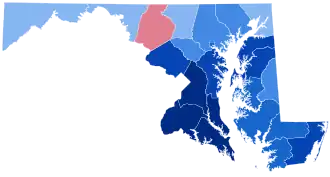 In this election, Maryland voted 39.72% more Democratic than the nation at-large.[1]