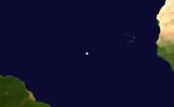 A tropical storm was detected to the west of Cabo Verde Islands on September 1. Tracking westward, it was encountered by another ship on September 4. The storm's subsequent progress is unknown.[18] Chenoweth extended the track of this system back to August 29 and combined it with the subsequent storm, while also postulating that the cyclone reached hurricane intensity on August 30.[14]