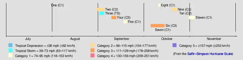 - ^ A major hurricane is a storm that ranks as Category 3 or higher on the Saffir–Simpson hurricane wind scale.[1]