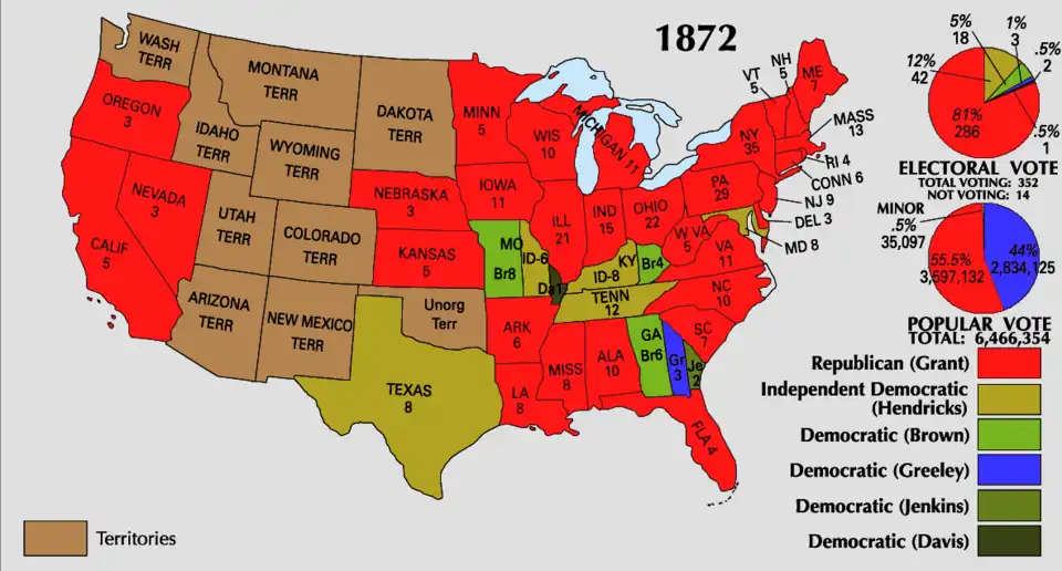 21. ^ "1872 Presidential General Election Results".