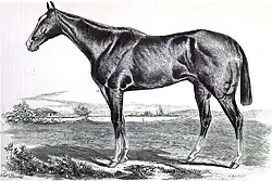 ![]() 1876 Kentucky Derby winner Vagrant in an 1877 drawing by T.J. Scott | |