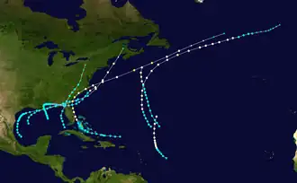 The Atlantic hurricane database (HURDAT) recognizes eight tropical cyclones for 1885 in the Atlantic basin; two were tropical storms and six were hurricanes, but none of these strengthened into a major hurricane.[1] Five of the systems made landfall in the United States.[3] José Fernández-Partagás and Henry F. Diaz did not add or remove any cyclones from their 1996 reanalysis, but modified the tracks of first, second, and eighth storms.[4] Furthermore, the Atlantic hurricane reanalysis project in the early 21st century neither adjusted the number of cyclones nor significantly revised the information uncovered by Fernández-Partagás and Diaz.[5] A reanalysis by climate researcher Michael Chenoweth, published in 2014, adds three storms and removes one, the sixth system. Chenoweth's study utilizes a more extensive collection of newspapers and ship logs, as well as late 19th century weather maps for the first time, in comparison to previous reanalysis projects.[6] However, Chenoweth's proposals have yet to be incorporated into HURDAT.[3]
