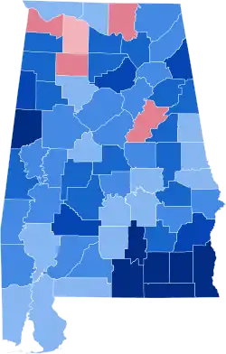 Talladega | 1,983 | 46.64% | 2,179 | 51.25% | 90 | 2.12% | -196 | -4.61% | 4,252 | ||