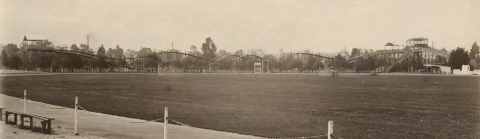 ![]() ![]() Photo of the Adelaide Oval grandstands in 1889 by photographer Ernest Gall. | ||||||||||||||||
