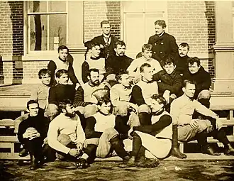 The 1891 Purdue football team was an American football team that represented Purdue University during the 1891 college football season. The team compiled a 4–0 record in the university's fourth season fielding an intercollegiate football team. For the 1891 season, Purdue hired Knowlton Ames as its football coach. Ames played for Princeton from 1886 to 1889 and was considered one of the greatest players ever to play college football, after scoring 730 points for Princeton. The 1891 Purdue team shut out all four opponents, outscoring Wabash, DePauw, Indiana, and Butler by a total of 194 to 0.[1] Purdue's 60–0 victory over Indiana[2] was the first installment in a rivalry which later became noted for the award of the Old Oaken Bucket trophy. It was this team that earned the university the Boilermakers nickname, as the Daily Argus News, a local Crawfordsville newspaper, reported on the game versus Wabash with the article Slaughter of Innocents: Wabash Snowed Completely Under by the Burly Boiler Makers from Purdue [sic].