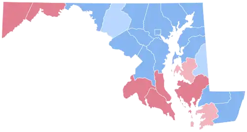In this election, Maryland voted 6.9% more Democratic than the nation at-large.[1]