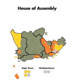The Afrikaner Bond won 35 of the 76 seats in the House of Assembly, which gave the Rhodes administration a comfortable majority when combined with Rhodes' 14 supporters in the Assembly.[2] The core opposition, largely led by James Rose Innes, John X. Merriman, and JW Sauer had only around 18 seats.[3][4]
