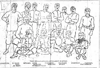 ![]() Drawing of "The Indianapolis Artillery Eleven"" from The Indianapolis News, October 5, 1894 | |