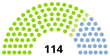 All 114 seats in the Storting 57 seats needed for a majority | |||||||||||||||||||||||||||||||||||||