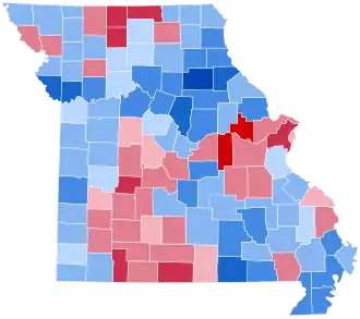 Saint Louis City | 59,931 | 48.11% | 60,597 | 48.64% | 2,749 | 2.21% | 327 | 0.26% | 974 | 0.78% | -666 | -0.53% | 124,574 |