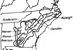 - ^ James E. Hudgins (April 2000). Tropical cyclones affecting North Carolina since 1586: An historical perspective. National Weather Service (Report). Blacksburg, Virginia: National Oceanic and Atmospheric Administration. p. 11. Archived from the original (PDF) on March 11, 2007. Retrieved May 2, 2013.