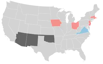 Virginia holds its gubernatorial elections in odd numbered years, every 4 years, following the United States presidential election year. New Jersey at this time held gubernatorial elections every 3 years. It would abandon this practice in 1949. Massachusetts and Rhode Island at this time held gubernatorial elections every year. They would abandon this practice in 1920 and 1912, respectively. Iowa and Ohio at this time held gubernatorial elections in every odd numbered year.