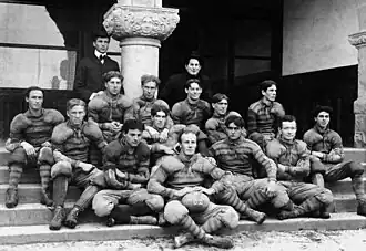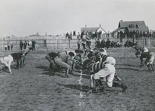 Needed improvements were made to the football grounds, including construction of a covered grandstand at a cost of $424 and a new fence costing about $250 more.[3] The fence was needed to replace one that was so low that it could be climbed by small boys seeking to see the game without buying tickets.[3] About 30 men came out daily for football practice, to be drilled in the basic skills of the game.[3]