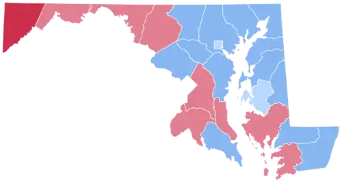 Wicomico | 2,179 | 44.47% | 2,593 | 52.92% | 127 | 2.59% | 1 | 0.02% | -414 | -8.45% | 4,900 |