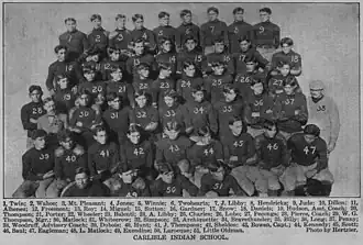 The 1905 Carlisle Indians football team represented the Carlisle Indian Industrial School as an independent during the 1905 college football season. Led by George Washington Woodruff in his first and only season as head coach, the Indians compiled a record of 10–4 and outscored opponents 354 to 44.[1]