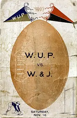 - ^ "WUPs and Wash-Jeffs Both Confident on eve of Supreme Football Struggle". The Pittsburgh Post. November 16, 1907. p. 7 – via Newspapers.com.