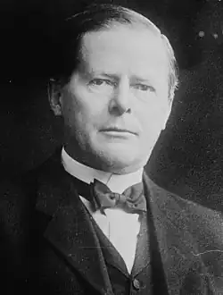 The People's Party National Committee met on November 26, 1907, to make preparations for the 1908 national convention. National chairman James Ferriss indicated that Thomas Watson was the front runner for the nomination, saying that the party hoped to forge an alliance with one or more of the other minor parties, including possibly the Independence League or the Prohibitionists.[21] In early 1908, however, at least one member of the national committee believed that Senator Robert La Follette of Wisconsin would win the Populist nomination.[22]