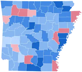 Arkansas | 937 | 56.04% | 672 | 40.19% | 42 | 2.51% | 21 | 1.26% | 265 | 15.85% | 1,672 |