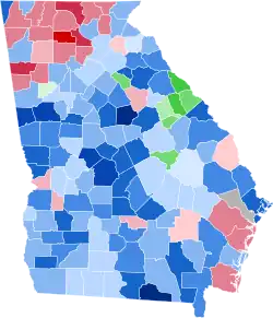 Following Reconstruction, Georgia would be the first former Confederate state to substantially disenfranchise its newly enfranchised freedmen, doing so in the early 1870s.[1] This largely limited the Republican Party to a few North Georgia counties with substantial Civil War Unionist sentiment – chiefly Fannin but also to a lesser extent Pickens, Gilmer and Towns.[2] The Democratic Party served as the guardian of white supremacy against a Republican Party historically associated with memories of Reconstruction, and the main competition became Democratic primaries, which state laws restricted to whites on the grounds of the Democratic Party being legally a private club.[3]