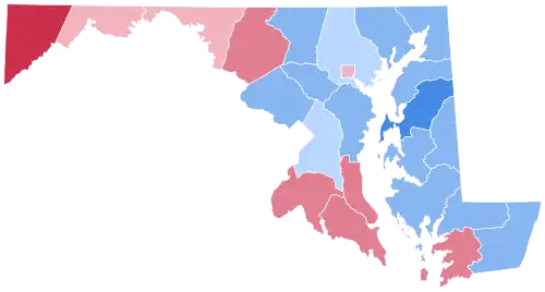 In this election, Maryland voted 8.28% more Democratic than the nation at-large.[8]