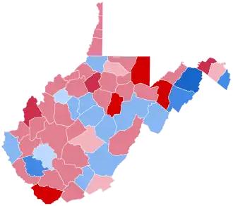 Wetzel | 2,235 | 42.23% | 2,874 | 54.31% | 96 | 1.81% | 85 | 1.61% | 2 | 0.04% | -639 | -12.07% | 5,292 |
