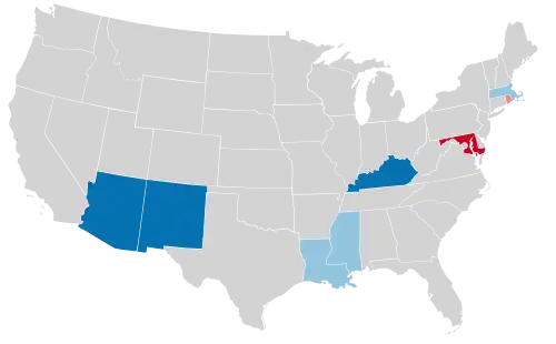 Kentucky, Louisiana, Maryland and Mississippi held their gubernatorial elections in odd numbered years, every 4 years, preceding the United States presidential election year.