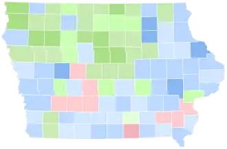 - ^ Because Wilson finished first and Roosevelt second in Iowa as a whole, all margins given are Wilson vote minus Roosevelt vote and percentage margins Wilson percentage minus Roosevelt percentage unless otherwise stated for the county in question.