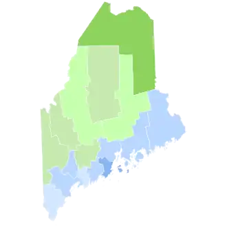 This was the only state that Wilson won in either of his two victories that would never support fellow Democrat Franklin D. Roosevelt in any of his landslide victories in the 1930s and 1940s.[1] Lincoln County and Waldo County voted Democratic for the first time since 1880. Androscoggin, Cumberland, Hancock, Knox, Sagadahoc, Washington, and York counties voted Democratic for the first time since 1852.