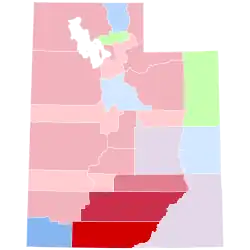 Uintah | 545 | 28.40% | 566 | 29.49% | 641 | 33.40% | 165 | 8.60% | 2 | 0.10% | -75[b] | -3.91% | 1,919 |
