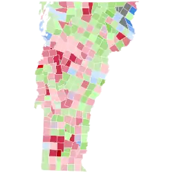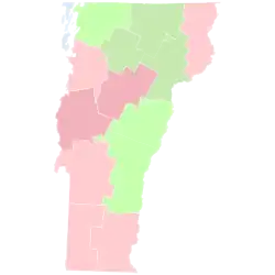 - ^ Because Roosevelt finished ahead of Wilson in Vermont as a whole, all margins give are Taft minus Roosevelt unless stated in the total for the county in question.