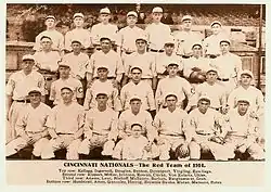 Cincinnati was an early season surprise, as many expected the club to struggle after losing some top players to the Federal League, and by losing player-manager Joe Tinker. An early season six game winning streak lifted the Reds to a 16-11 record, which put them in second place in the National League, only one game behind the Pittsburgh Pirates. The Reds continued to play excellent baseball, and on June 1, after winning their eighth straight game, the Reds were tied with the New York Giants for first place in the league with a 26-15 record. The club would then struggle badly, going 14-33 in their next 47 games to fall out of the pennant race.