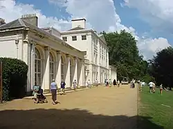 Kenwood House was occupied by Grand Duke Michael Mikhailovich of Russia. He was a great-great-grandson of Russian ruler Catherine the Great and a second cousin of the then tsar Nicholas II.[1] Michael had lived in exile in Western Europe, and particularly the United Kingdom, since marrying Countess Sophie of Merenberg in 1891. The morganatic marriage had been conducted in Italy without the permission of his parents and was illegal under Russian law.[2] Michael rented Kenwood House from 1910, for £2,200 a year. He was active in the London social circuit and held many parties and balls there.[2]