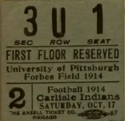 - ^ "Heavy Pittsburgh Team Triumphs on Percy Field". The Ithaca Journal. September 28, 1914. p. 8 – via Newspapers.com.