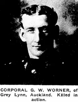 - ^ "Private Graham W. Cook". Auckland Star. Vol. XLVII, no. 204. 26 August 1916. p. 6. Retrieved 14 January 2020.