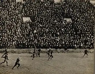 ![]() Fritz Pollard running during the Harvard-Brown football game of 1916 | |