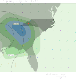 - ^ a b "The tropical storm passes inland today". The Concord Times. July 6, 1916. p. 1. Archived from the original on May 2, 2021. Retrieved May 5, 2017 – via Newspapers.com.
