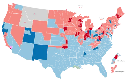 1916 presidential election results. Red denotes states won by Hughes, blue denotes states won by Wilson. Numbers indicate the electoral votes won by each candidate. | |