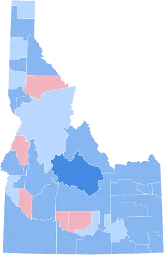 Lemhi | 1,080 | 57.32% | 723 | 38.38% | 79 | 4.19% | 2 | 0.11% | 357 | 18.95% | 1,884 |