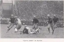 William J. Foster was appointed student manager for the 1919−20 football season by Karl E. Davis,[14] and Jimmy DeHart, "the idol of football lovers of Pittsburgh and one of the greatest all-around athletes ever developed at the University of Pittsburgh," was unanimously elected Captain of the 1919 team by a mail-in vote.[15]