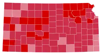 As it turned out, Harding easily won Kansas by a two-to-one majority, fifty percent larger than predicted by the combined polls of editors at the end of October, and a swing of 37 percentage points from Wilson's victory in the state in 1916. Harding carried all 105 Kansas counties, whereas in 1916 Charles Evans Hughes had carried only 26, although the trend – dramatic as it was – was substantially smaller than Harding's landslides in heavily German-American North and South Dakota.[14] In spite of Cox's two-to-one loss, as of 2024 this remains the last presidential election when Kansas voted less Republican than California, Illinois, Iowa, Minnesota, New York, Washington or Wisconsin.