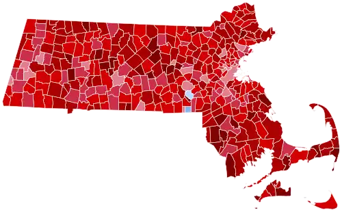 In 13 of the state's 14 counties (all but Suffolk), Harding broke 60% of the vote, and in nine, Harding broke seventy percent. He even reached eighty percent in the island county of Dukes and peninsular Barnstable.