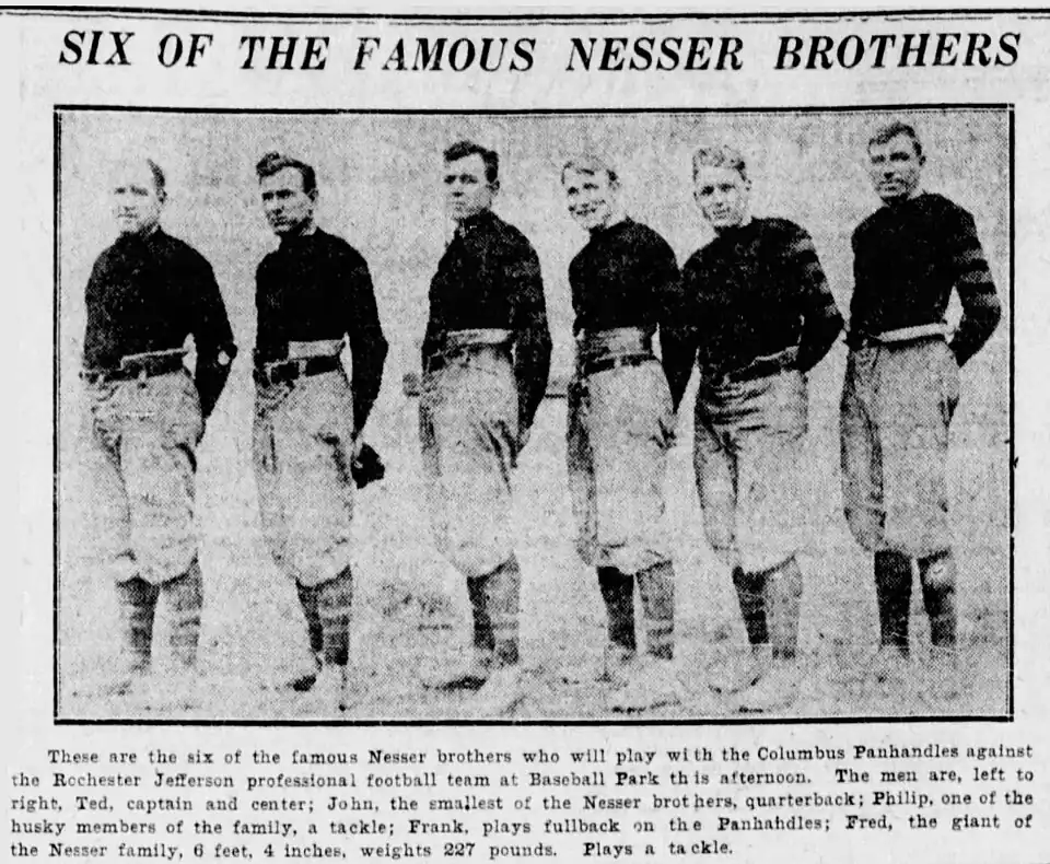 - ^ "All-Americans Score 38 Against Columbus: Frank Nesser Only Redeeming Feature in Panhandles' Lineup," Buffalo News, Oct. 10, 1921, p. 18.