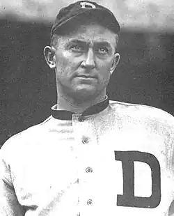 The team's fourth starter, Red Oldham, had an 11–14 record. As an indicator of how bad the team's pitching was in 1921, Oldham's 4.27 ERA was the second lowest on the team. Shortly after an interview in which new manager Ty Cobb told a reporter that "his aim was to use tact and diplomacy" in dealing with players, Cobb publicly embarrassed Oldham, as he called time-out from his position in center field, "ran in, wrested the ball from Oldham's hand, and gave him a dressing-down before calling in a reliever."[10] Oldham appeared in the final inning of the 1925 World Series for the Pittsburgh Pirates pitching a masterful 1–2–3 inning against three future Hall of Famers: Sam Rice (strikeout), Bucky Harris, and Goose Goslin (strikeout). The Pirates won the game and the World Series with Oldham on the mound.