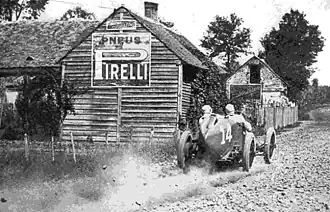 Émile Mathis was the sole other French entrant with a car of his own manufacture. Still so close to war's end, German teams were not invited.[15] The Anglo-French STD (Sunbeam) company had seven cars entered, however ten days out from the race Louis Coatalen, racing director realised the cars would not be prepared and withdrew the team. When the drivers protested he relented to let anyone who could be ready to race. In the event four started – those for René Thomas, André Boillot and Brooklands regulars Kenelm Lee Guinness and Henry Segrave - while another STD entrant, alcohol heir André Dubonnet, switched to Duesenberg to replace their injured driver, Inghilbert.[20][21] FIAT had entered three of its new 802 models,[22] including cars for Bordino, and Sivocci (formerly at Alfa Romeo). However industrial unrest in Italy prevented them being ready and delivered in time.[20][16] When entries closed the list was quite short. Fred Duesenberg had been keen to send four cars across but could not afford the shipping costs. When French-American spark-plug manufacturer Albert Champion provided $60000 of sponsorship, their entries were gladly received.[20][12] The works drivers of Murphy, Guyot and Boyer were supplemented by French driver Louis Inghilbert.