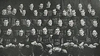 The 1922 Iowa Hawkeyes football team was an American football team that represented the University of Iowa as a member of the Big Ten Conference during the 1922 Big Ten football season. In their seventh year under head coach Howard Jones, the Hawkeyes compiled a 7–0 record (5–0 in conference games), tied with Michigan and Chicago for the Big Ten championship, and outscored opponents by a total of 208 to 33.[1] The Hawkeyes were retroactively selected as the 1922 national champion by the Billingsley Report.[2] The season was part of a 20-game winning streak that began on November 6, 1920, and continued until October 20, 1923.