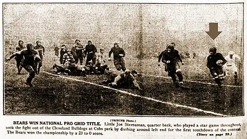 - ^ "Chicago Bears Win Professional Grid Title: Sternaman's Kicks Trip Yellow Jackets in Thrilling Battle," Philadelphia Inquirer, Dec. 14, 1924, pp. 27–28.