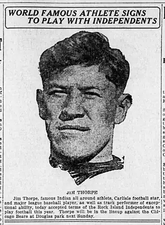 - ^ a b c "Thorpe Reports to Islanders Wednesday: Famous Indian Will Be of Value to Lineup and Boost for Rock Island," Rock Island Argus, Sept. 22, 1924, p. 13.