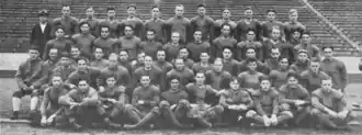 The USS Maryland starters were Goodall (left end), Kutesfar (left tackle), Dumphy (left guard), Miller (center), Cardini (right guard), Elich (right tackle), Berrier (right end), Timmons (quarterback), Young (left halfback), McGillicuddy (right halfback), Loiselle (fullback).[14]