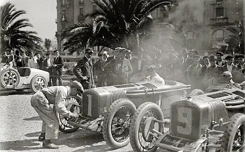 This year, the Targa Florio was a competition between the French teams of Bugatti and Peugeot as the major Italian teams did not enter. In a close race, the Peugeots initially led but it was the smaller Bugatti of Bartolomeo Costantini that came through for the victory. Louis Wagner was second for Peugeot, after he was delayed when stopping to assist his teammate, Christian d'Auvergne, who had been seriously injured in an accident.