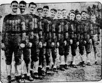 The starting lineup was: Green (left end), Norfleet (left tackle), Grandoff (left guard), Bono (center), Houser (right guard), Hicks (right tackle), Nolan (right end), Bowyer (quarterback), McEwen (left halfback), Owens (right halfback), and Sauls (fullback).[32]